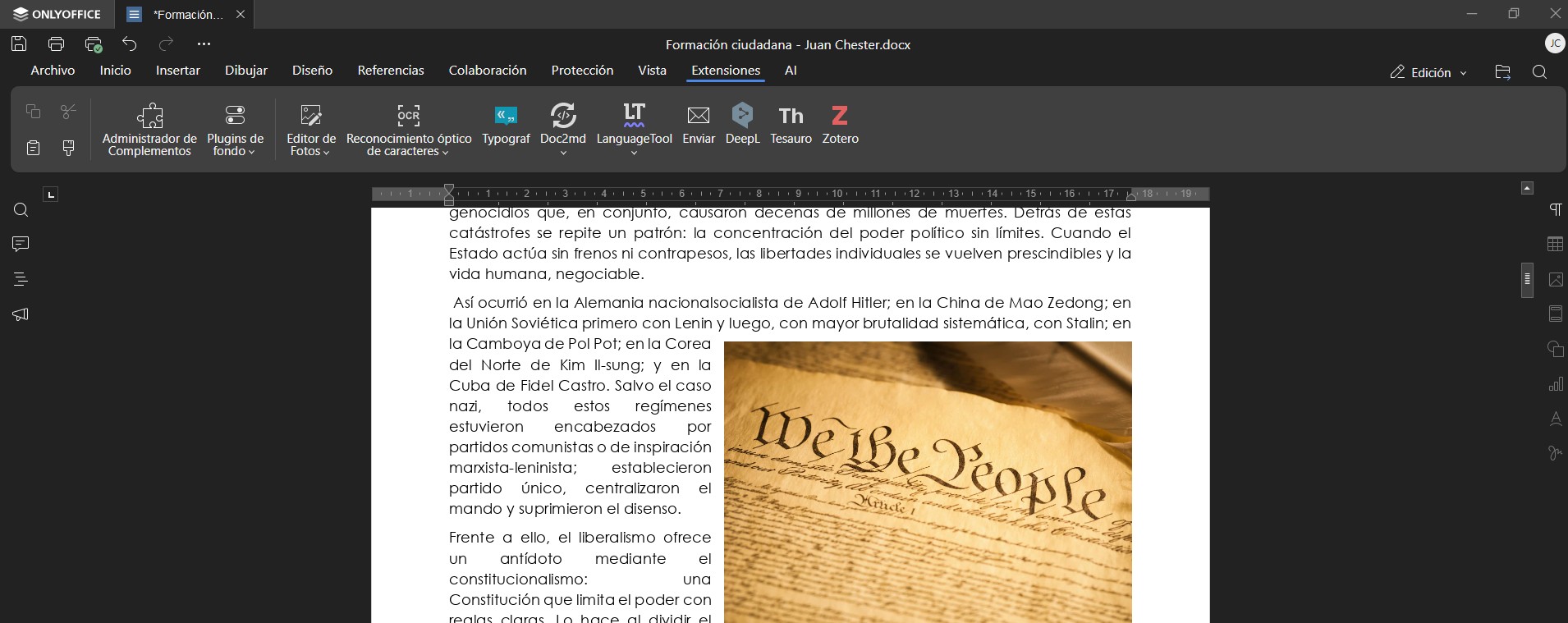 - Compatibilidad y Personalización (SEO Keyword): Maneja casi todos los formatos de Office (DOCX, XLSX, etc.) y, al ser Código Abierto, tiene una comunidad enorme que lo mejora constantemente.